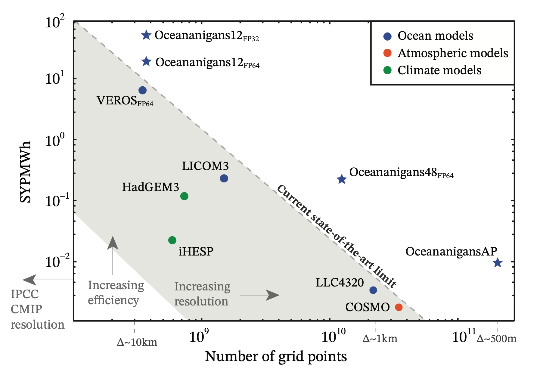 number of grid points for state-of-the-art atmosphere and ocean models.